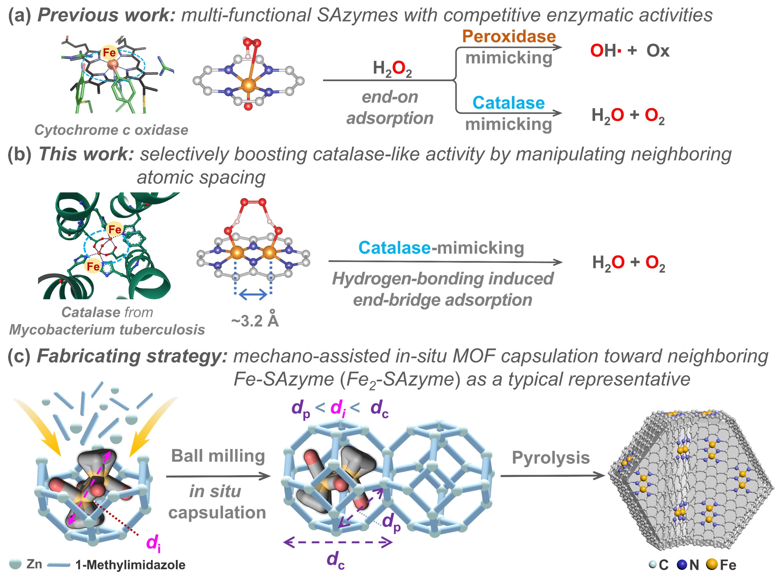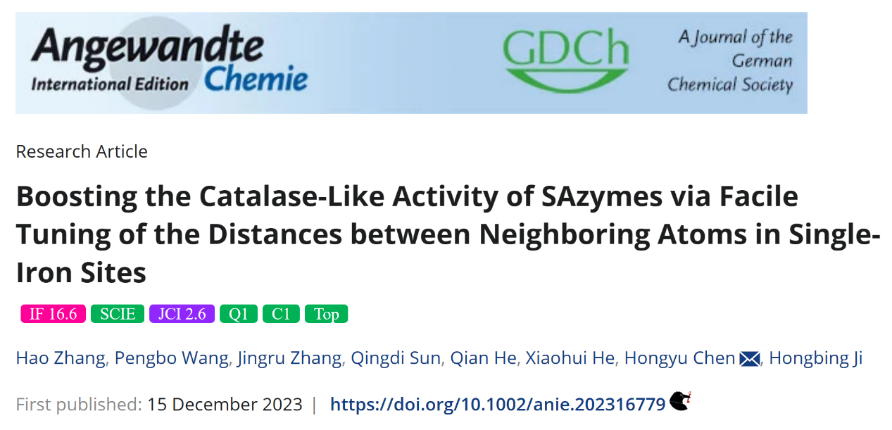 近日,我院王双飞院士团队“植物纤维清洁分离转化与纸基功能材料绿色制备”课题组陈虹宇副教授与浙江工业大学纪红兵教授合作在化学领域国际顶级综合期刊《Angewandte Chemie International Edition》上以全文形式发表论文Boosting the Catalase-Like Activity of SAzymes via Facile Tuning of the Distances between Neighboring Atoms in Single-Iron Sites,同时获邀封面,并受邀在官方WileyChem微信公众号上发表评述。该论文实现了我院以第一通讯单位在《Angewandte Chemie International Edition》发表论文的突破,也是轻工技术与工程学科在国际具有重要影响力期刊上发表高水平研究成果的又一重大突破。