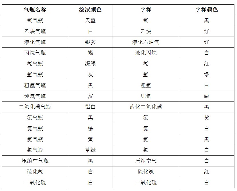 第三条 依据《危险货物分类和品名编号》有关规定,气体钢瓶盛装气体通常分为易燃气体(包括氢气、一氧化碳、硫化氢、乙炔、丙炔、甲烷、乙烷、丙烷、丁烷、乙烯、丙烯等)、助燃气体(包括氧气、压缩空气、氯气等)、不燃气体(包括氮气、二氧化碳、氩气、氦气、氖气等)和有毒气体(包括氯气、硫化氢、氨气、一氧化碳、二氧化硫等)。