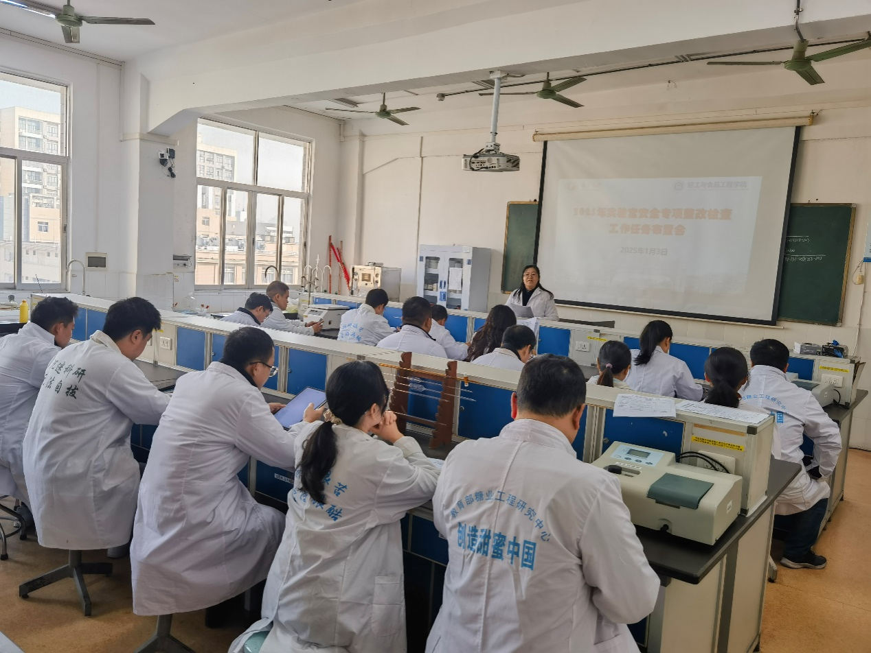 为做好学院实验室安全专项整治2024年整改年收官总结,结合期末、元旦、寒假及春节期间学院实验室安全工作,根据学校《关于开展岁末年初实验室安全隐患大排查的通知》要求,1月3日,我院组织召开实验室安全专项整改检查工作布置会。学院领导班子成员、各系主任、专任教师代表参加了会议,副院长陆登俊主持会议。