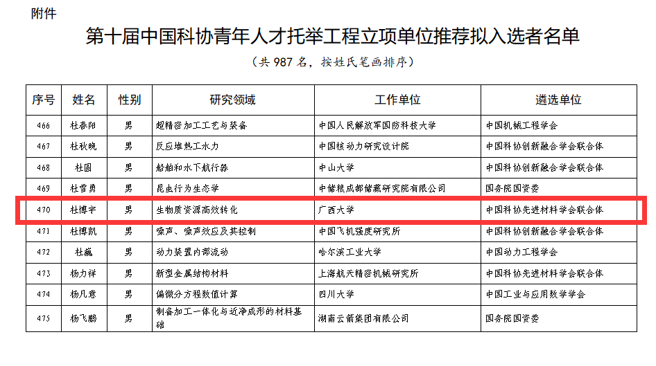 近日,中国科学技术协会第十届青年人才托举工程入选者名单公布,我院青年教师杜博宇经中国造纸学会资格审查、初评、答辩,中国科协先进材料学会联合体答辩评审等环节,成功入选。