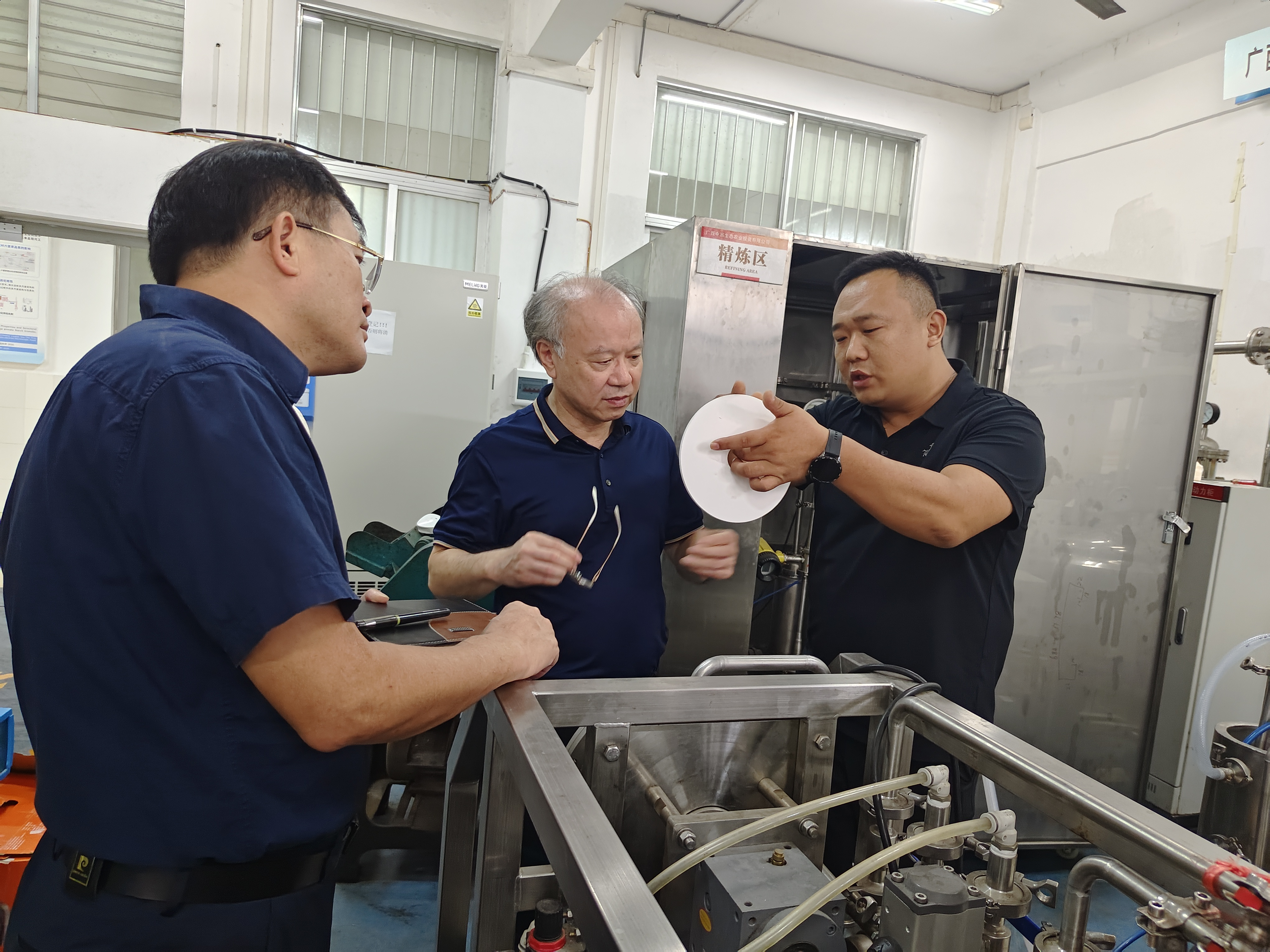 图2 王双飞院士就陶瓷膜技术在油脂精炼中的产业化应用进行现场指导