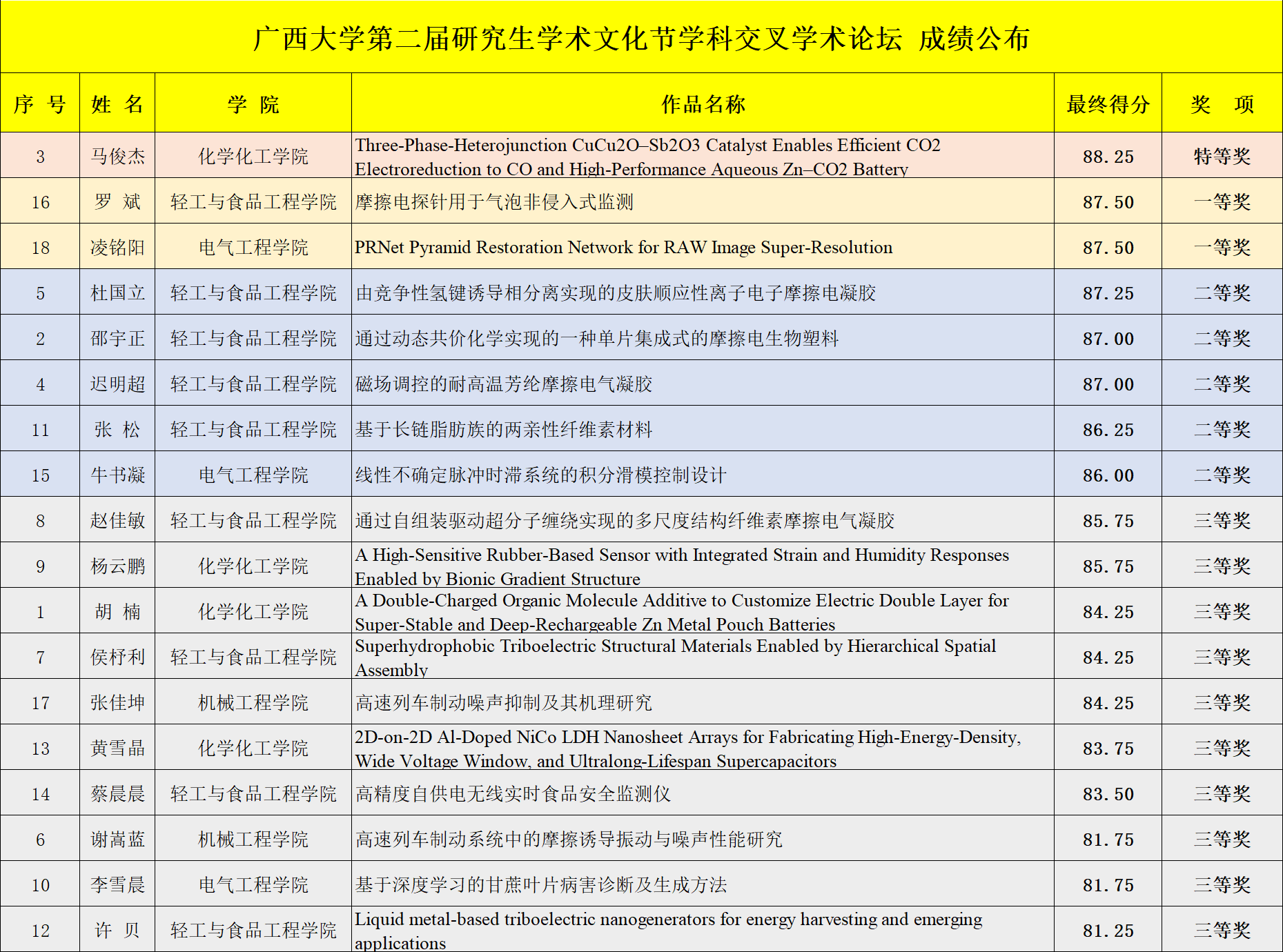 本次大赛的目的是为了激发研究生的创造性思维,促进学生进行多学科交叉的创新研究,以提高学生的创新精神与实际应用能力。以此为平台,学生可以打破学科界线,深入开展学术交流和协作,探索未知的学术空间,促进学科的交叉和融合。相信在未来的学术交流中,学科群的研究生们能把学术交叉的思维融会贯通,在服务轻化工程与先进制造中贡献更多的青年力量!