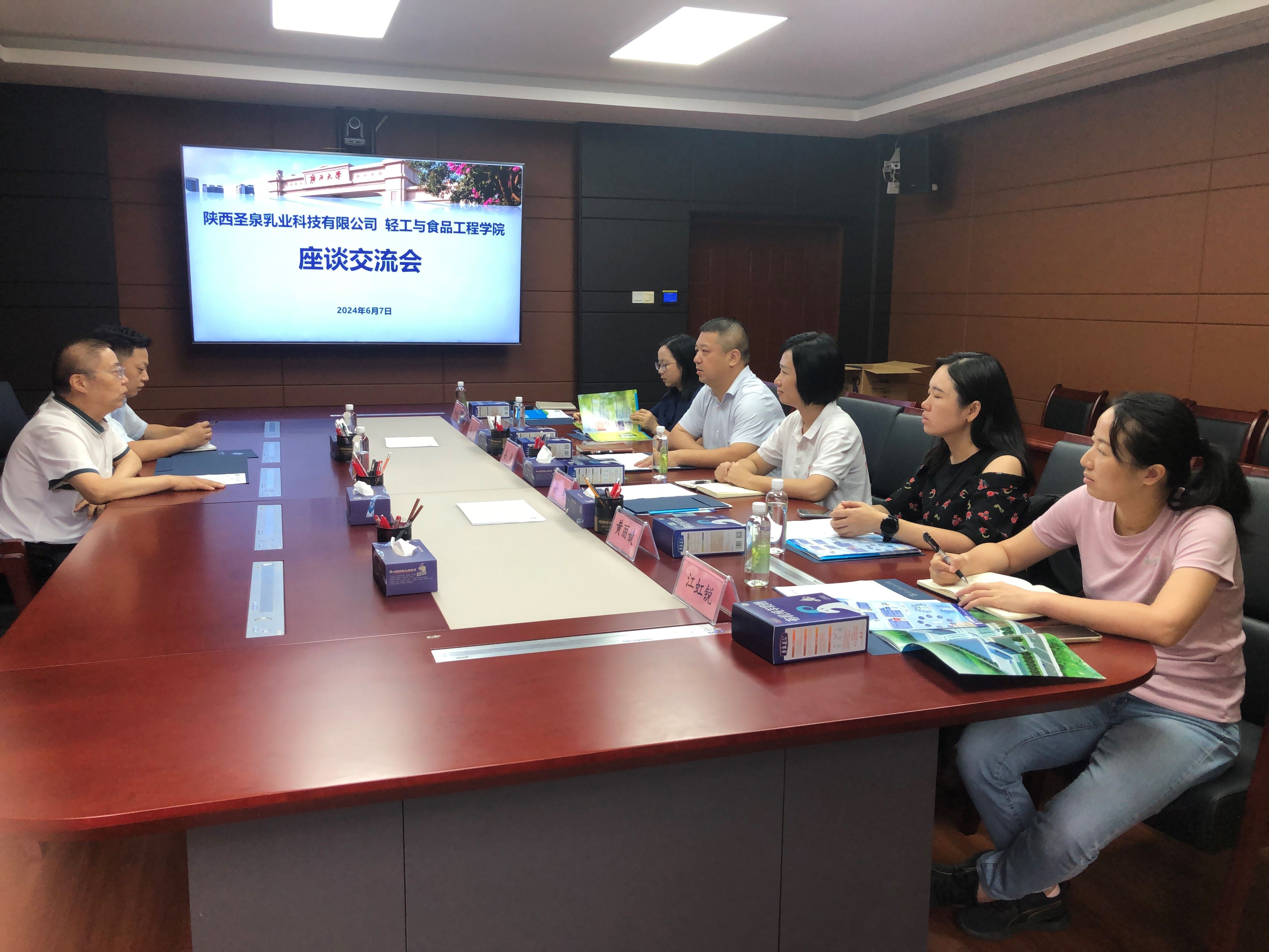为进一步加强校企合作,更好地发挥校企双方资源优势,推进校企协同育人,促进产学研合作,服务行业发展,2024年6月7日上午,陕西圣泉乳业科技有限公司董事长胡智、董事长助理李国栋一行到我院访问,开展校企合作座谈交流并与签订双方合作框架协议。欧美日韩国产在线党委书记姜玮,党委副书记孙玲,食品科学与工程系教师李树波、江虹锐、高洁,包装工程系教师黄丽婕等学院领导老师参加了本次活动。