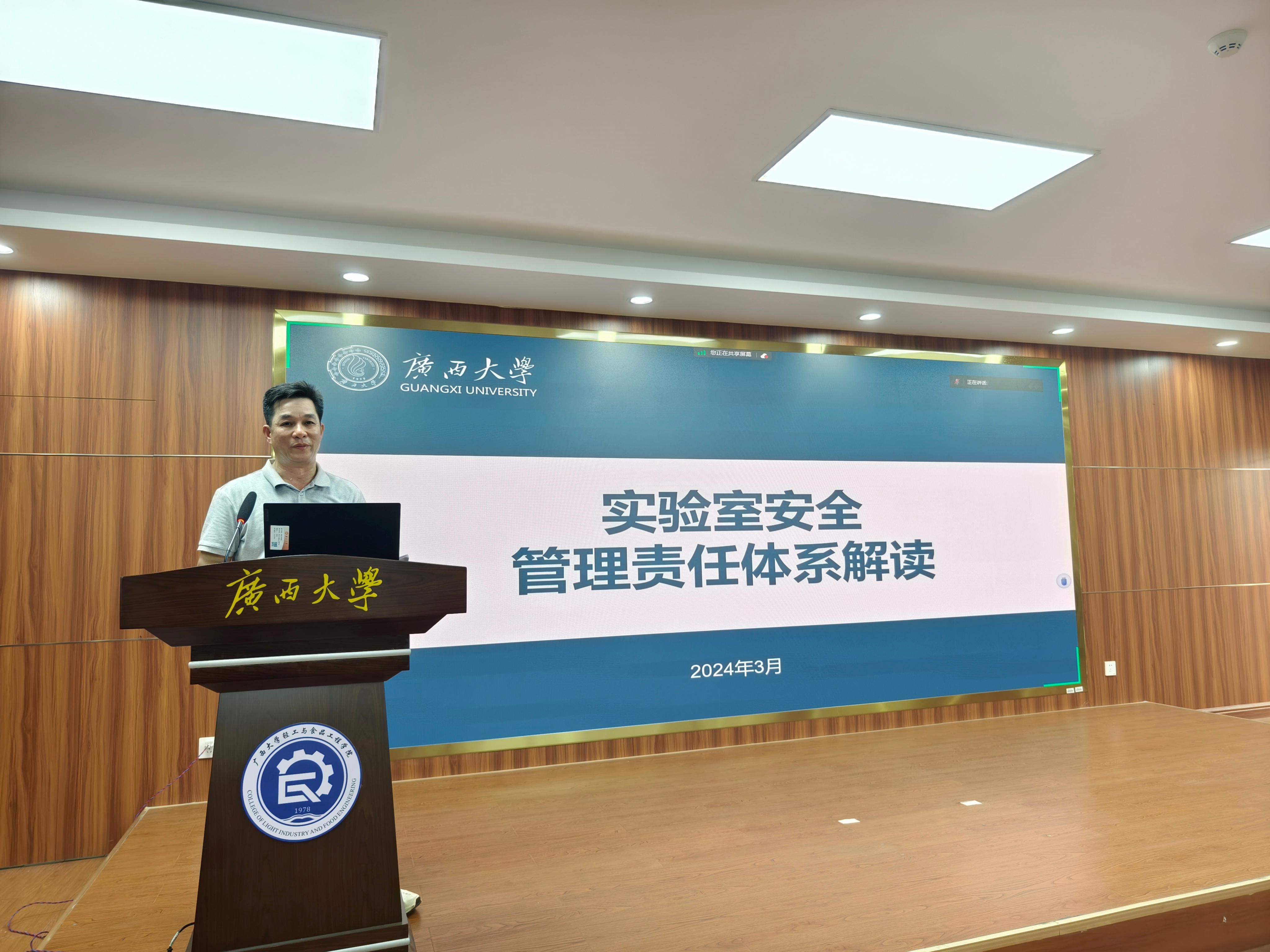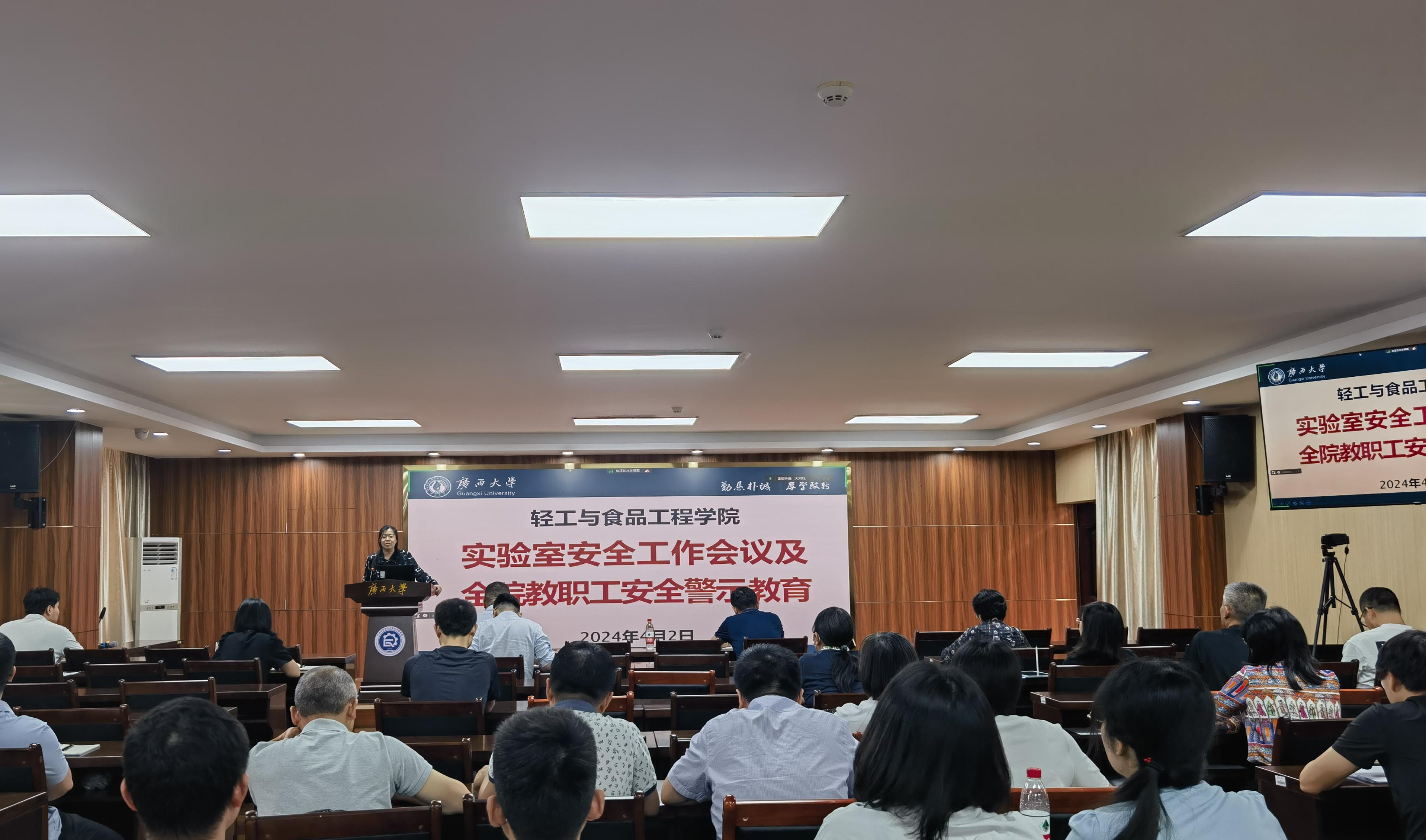 为总结3月29日216实验室起火事件的教训和现有实验室安全管理中的不足,提高学院师生安全意识,进一步压实责任,我院于2024年4月2日下午组织召开了全体教职工参加的实验室安全工作会议,对全院教职工进行安全警示教育,布置全院实验室安全隐患排查和整改工作,并邀请国实处甘正华副处长做“实验室安全管理责任体系解读”专题报告。学院党委书记姜玮主持会议,院长覃程荣及全体领导班子成员出席会议,全院教职工参会。