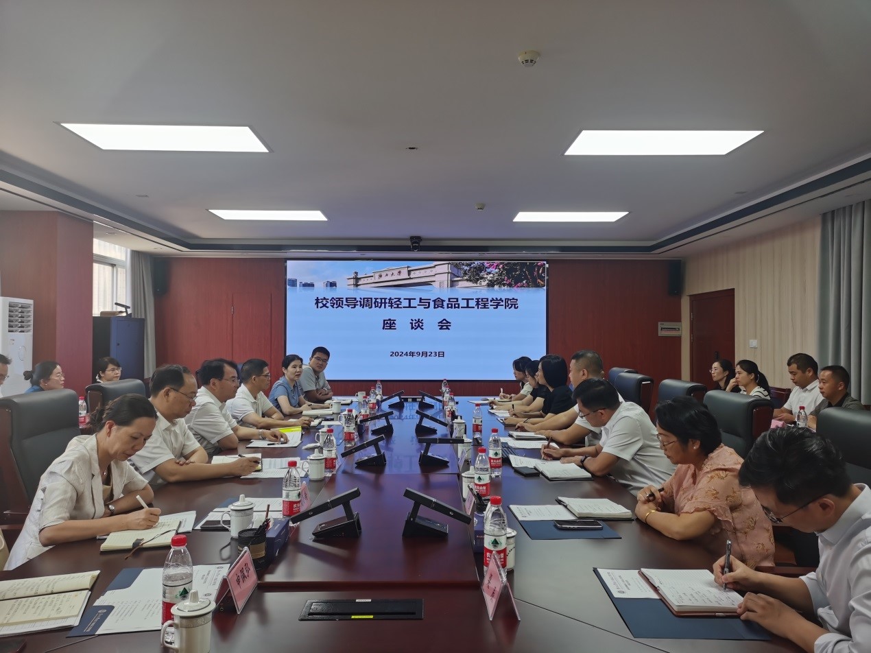 李国忠书记认真听取了汇报,并对学院在发展规划、人才队伍建设、科学研究成果等方面取得的成绩表示肯定。他指出,轻工学院作为学校内涵式高质量发展的成功案例,应当继续发挥引领作用,积极探索并应用新质生产力,以创新为驱动,促进学院各项事业的蓬勃发展,为国家和地方建设发展作出更大贡献。