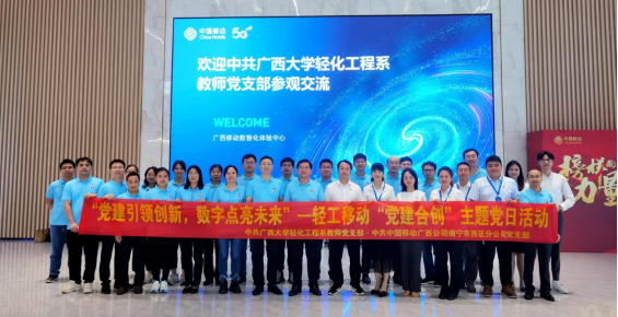 2023年6月27日下午我院党委副书记、院长覃程荣同志率领轻化工程系教师党支部全体党员赴中国移动广西公司开展“党建引领创新、数字点亮未来”主题党日活动