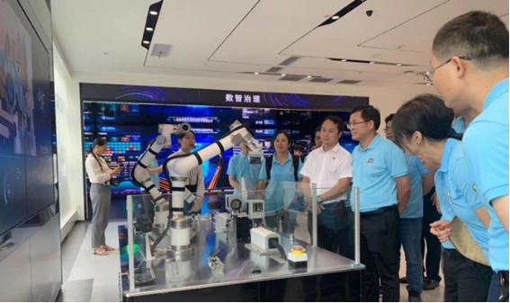 首先,支部全体党员在中国移动西区分公司党支部书记、副总经理许宝莹带领下,参观了中国移动5G数智化展厅,零距离体验了人工智能、元宇宙、裸眼3D、VR等沉浸式、互动性的应用场景,感受5G新技术在服务经济社会发展中的成果,体验未来运用数字技术助力数字广西建设的宏伟蓝图。深刻感受到了5G与人工智能、虚拟现实、大数据等技术深度融合为智慧党建、智能制造、智慧校园、智能管理、智慧生活带来的便捷与高效,感受到数字科技之美。