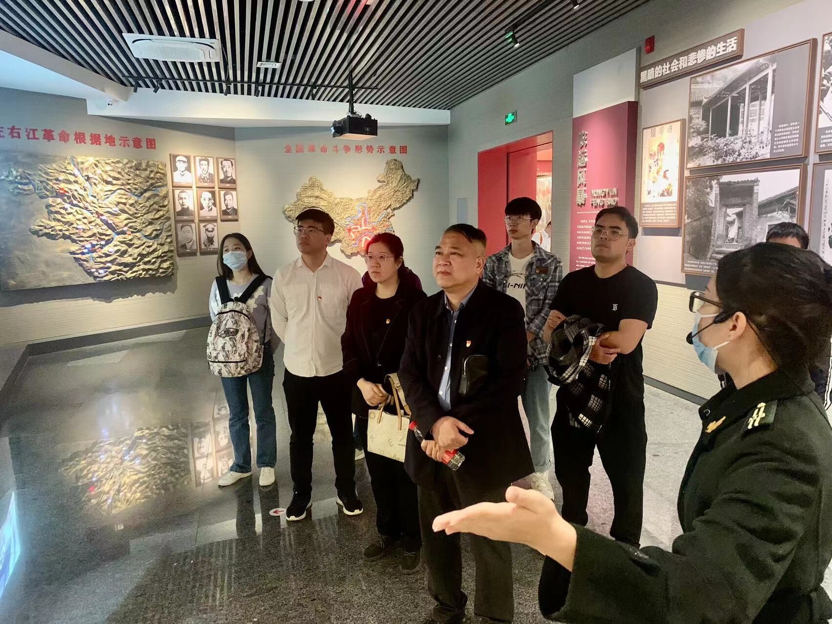 为全面学习贯彻党的二十大精神,提升党支部书记综合素质能力, 3月9日-10日,我院根据党支部书记培训班的教学要求,组织各支部书记赴百色起义纪念馆和中国工农红军第七军军部旧址(粤东会馆)开展现场教学,并到百色学院农业与食品工程学院进行座谈交流。