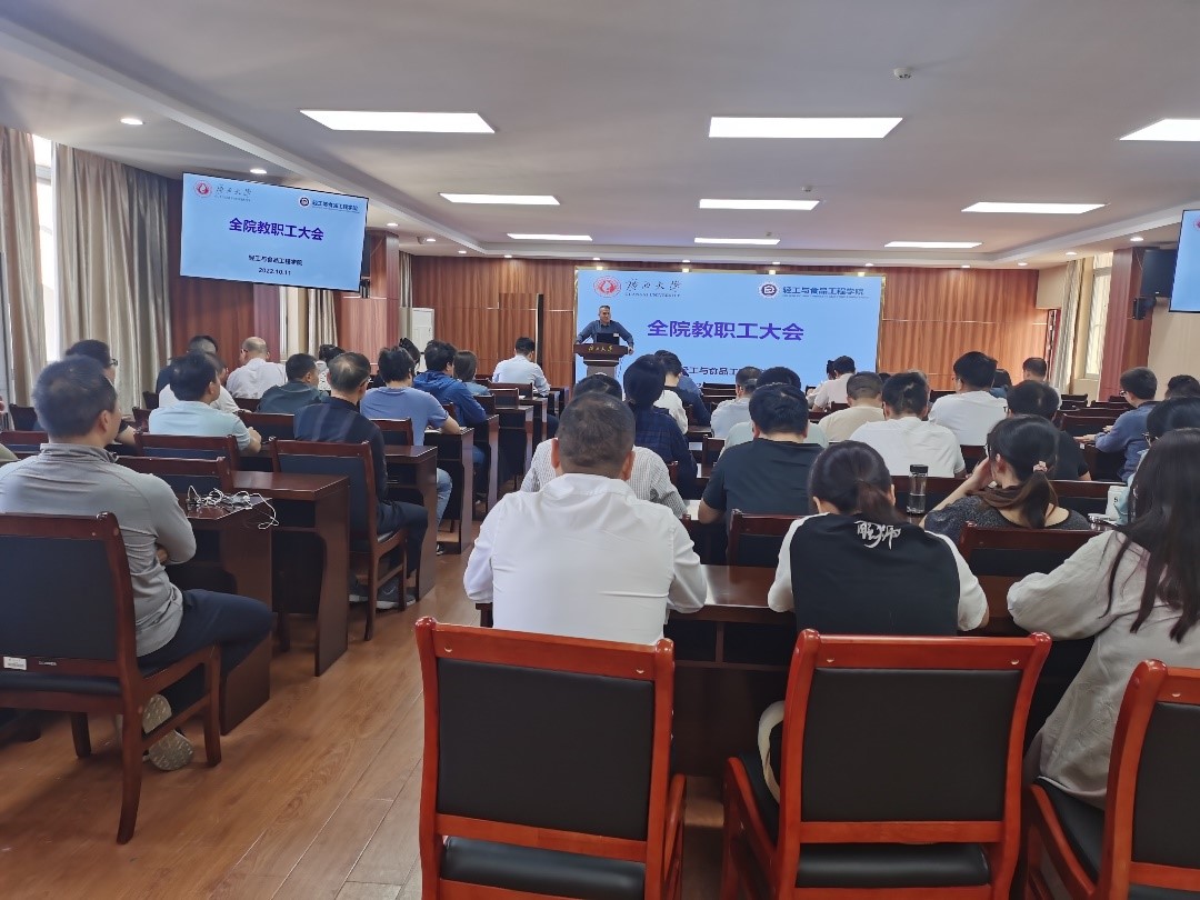 2022年10月11日下午,我院在604会议室召开全院教职工大会,许树沛书记主持会议。
