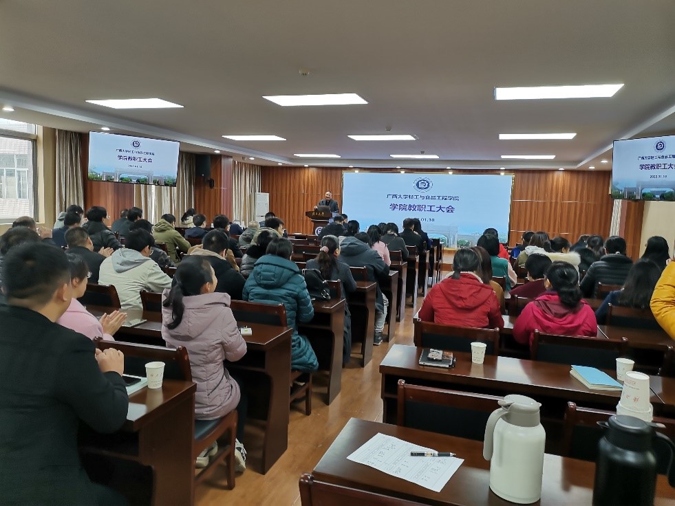 2022年1月10日下午,我院在604会议室召开全院教职工大会,学院党委书记许树沛主持会议。