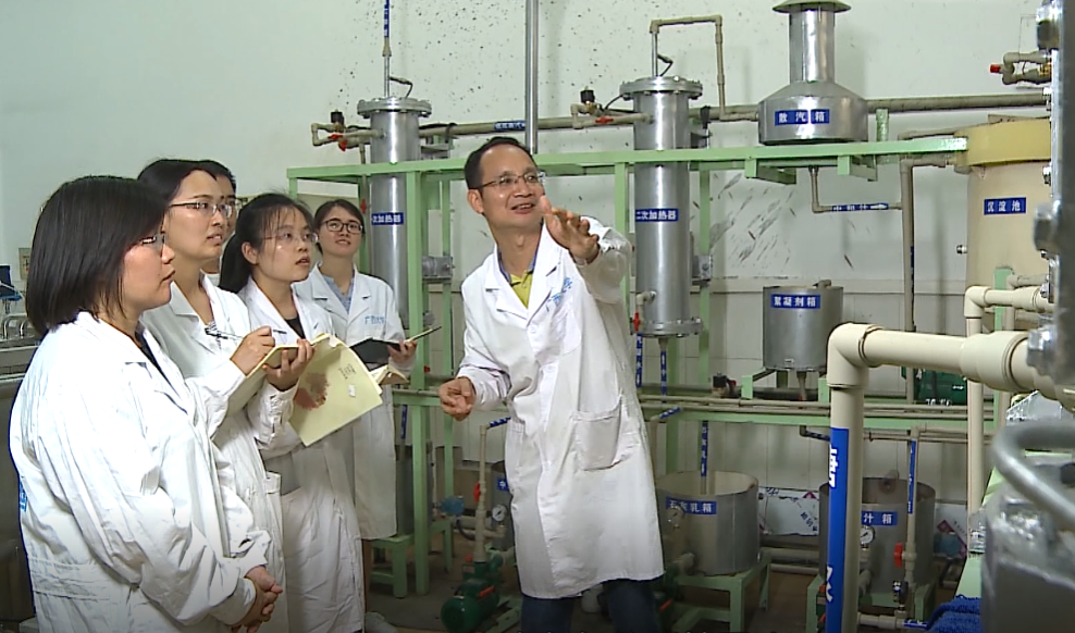 李凯(右一)讲解甘蔗膜法绿色物理清净制糖技术(央广网发 受访者供图)