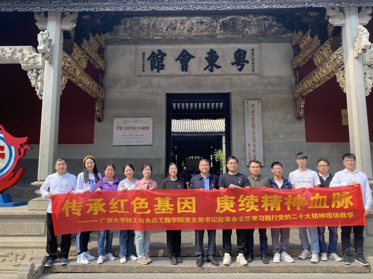 为全面学习贯彻党的二十大精神,提升党支部书记综合素质能力, 3月9日-10日,我院根据党支部书记培训班的教学要求,组织各支部书记赴百色起义纪念馆和中国工农红军第七军军部旧址(粤东会馆)开展现场教学,并到百色学院农业与食品工程学院进行座谈交流。