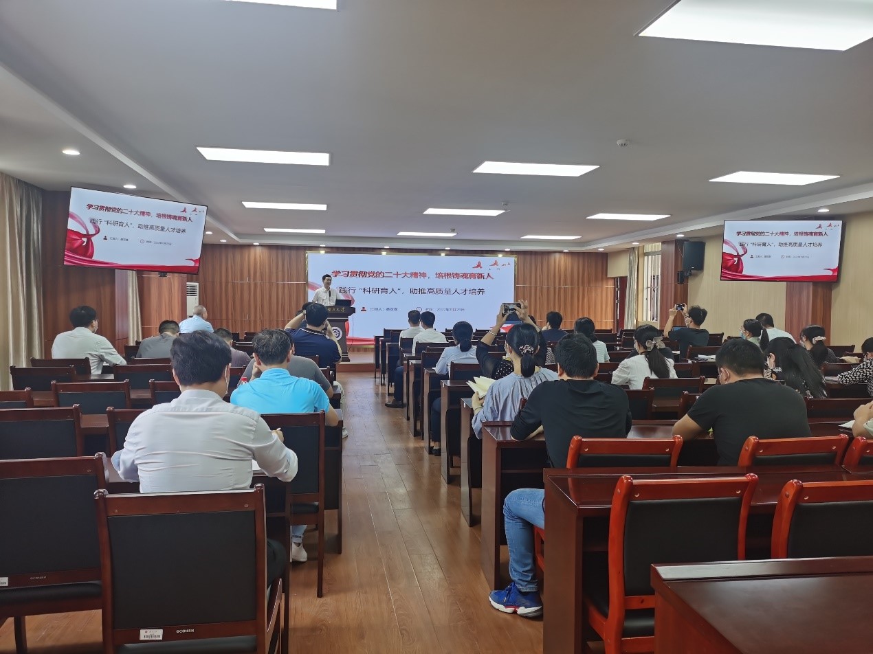 2022年11月29日,我院开展“学习贯彻党的二十大精神、培根铸魂育新人”主题师德巡讲活动。这次活动以报告会的形式进行,会议邀请了聂双喜老师作主题报告,报告题目为“践行科研育人,助推高质量人才培养”。学院全体教师参加了活动。