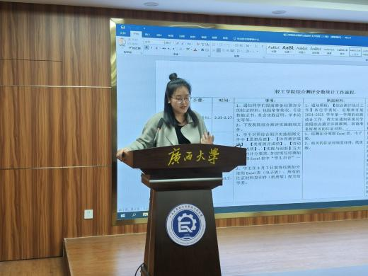 规范流程树标杆,精准施策育新人。为规范学生综合测评工作机制,确保综测评定公平、公正、公开,3月3日晚,我院在学院604南华厅会议室举办“博雅轻言”第1期——综测工作推进会。会议由学院辅导员曹羚彬老师与学习部负责人主讲,学院学习部骨干、各班级学习委员参与本次会议。