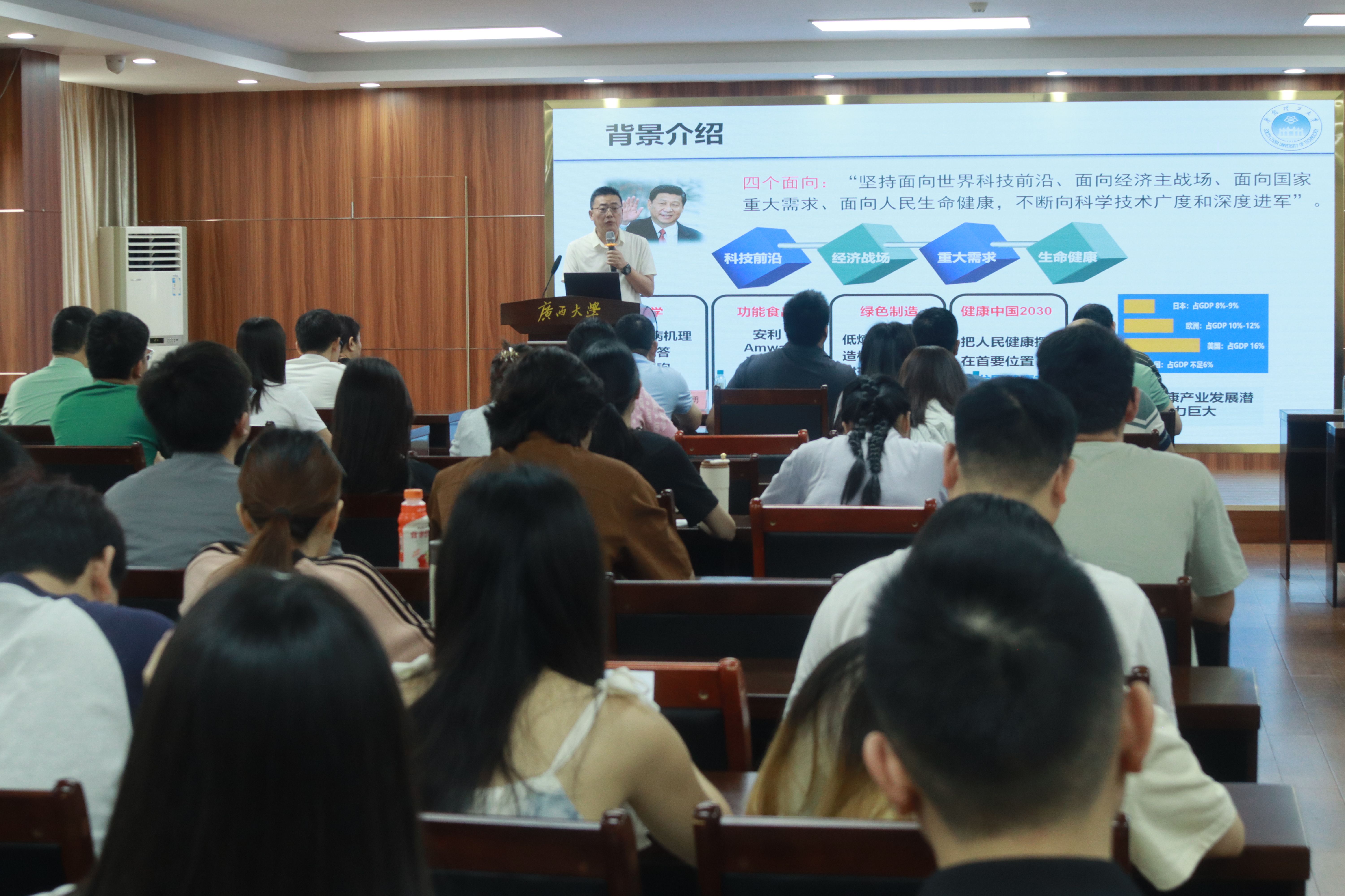 首先,娄教授从实验研究背景出发,阐述了食品功能因子在大健康产业中的关键作用。随着人们对健康生活的日益关注,食品功能因子作为预防和辅助治疗疾病的天然成分,正变得越来越重要。娄教授强调,它们不仅是营养素的来源,更是维持和提高人体健康的有力支撑。接着,娄教授详细介绍了他所研究的一种名为植物乳杆菌FS4722的益生菌如何缓解高尿酸血症的分子机制。高尿酸血症是一种常见的代谢性疾病,与痛风、肾脏疾病和心血管疾病等多种病症密切相关。娄教授的研究发现,这种特定的益生菌能够有效地调节尿酸代谢途径,降低血尿酸水平,同时对肠道菌群产生积极影响。然而,娄教授也指出,不是所有的益生菌都对人体有益,不同的益生菌株在效果上存在着明显的差异。他还分享了肠道菌群及其代谢物与血尿酸水平之间的关系,强调了这些微生物对于人体健康的潜在影响。最后,娄教授强调了理论研究与实验产品开发的重要性。他认为,学术研究不仅要停留在理论层面,更要通过实验制作出实际的产品,并且在人群中进行测试,以确保其效果和安全性。此外,他还特别指出了高尿酸血症与其他代谢性疾病如糖尿病、肥胖症等之间的密切联系,提醒在场的学生在研究过程中要考虑到这些复杂的相互作用。