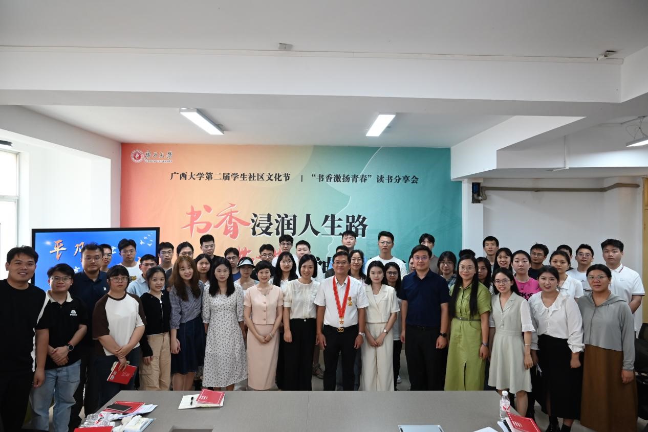 4月28日下午,在第134个五一国际劳动节来临之际,以“书香浸润人生路,劳模精神引未来”为主题的第二届学生社区文化节——“书香激扬青春”读书分享会在不卡毛无套内射久久不“四力同圆”辅导员工作室顺利举办。全国“五一”劳动奖章获得者、我院院长覃程荣在读书会上作主旨发言并领读《劳模精神、劳动精神、工匠精神学习读本》。
