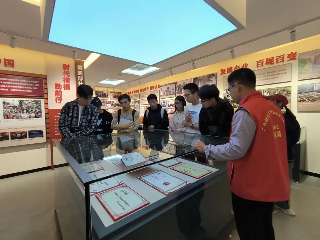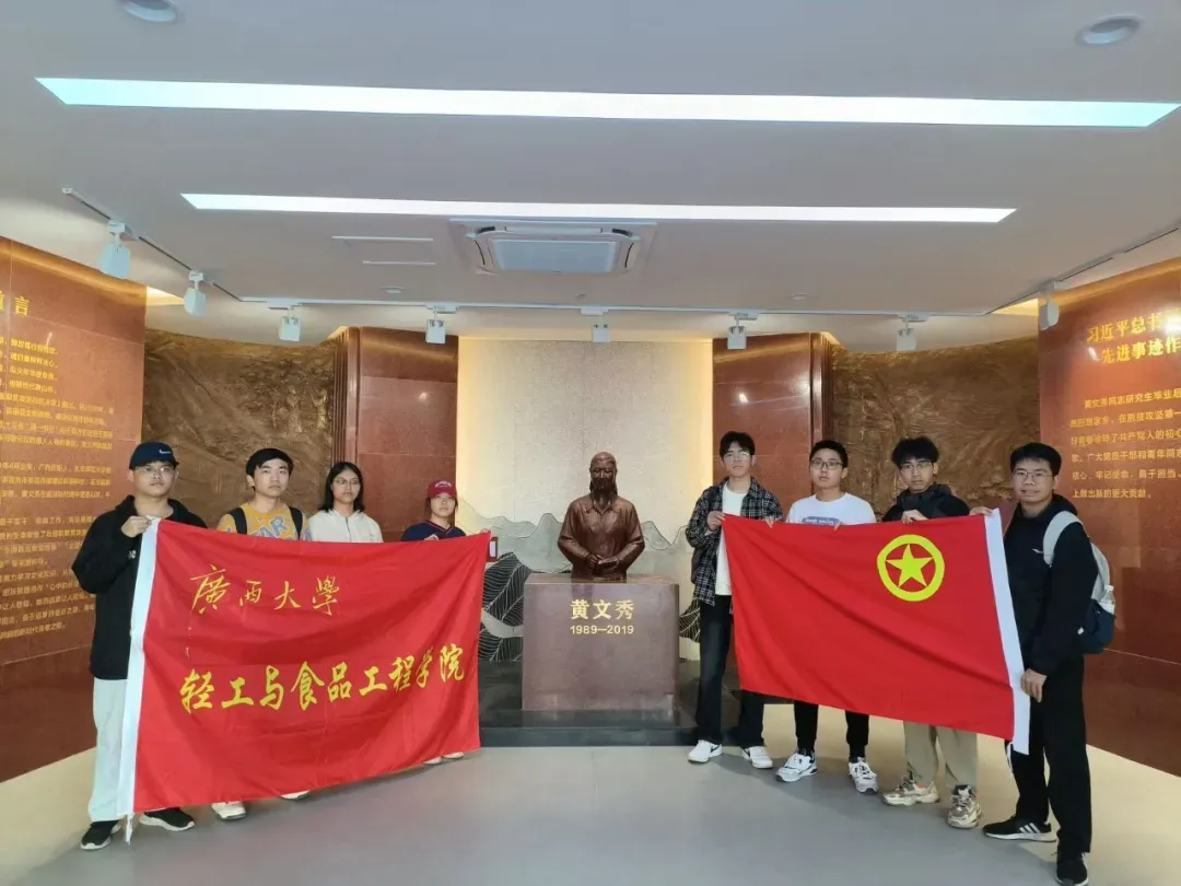 轻化211班卢廷杰同学带领的寒假社会实践团于2024年2月20日至22日在百色市乐业县新化镇百坭村学习黄文秀同志的先进事迹及其精神,探寻百坭村脱贫攻坚的故事。卢廷杰表示,黄文秀是值得当代青年人学习和追随的榜样,实践团以此次学习实践为契机,坚定信念,发扬和传承黄文秀精神,脚踏实地、不畏艰苦,立足八桂大地,将所学运用到国家最需要的地方,为实现中华民族伟大复兴贡献青春力量。