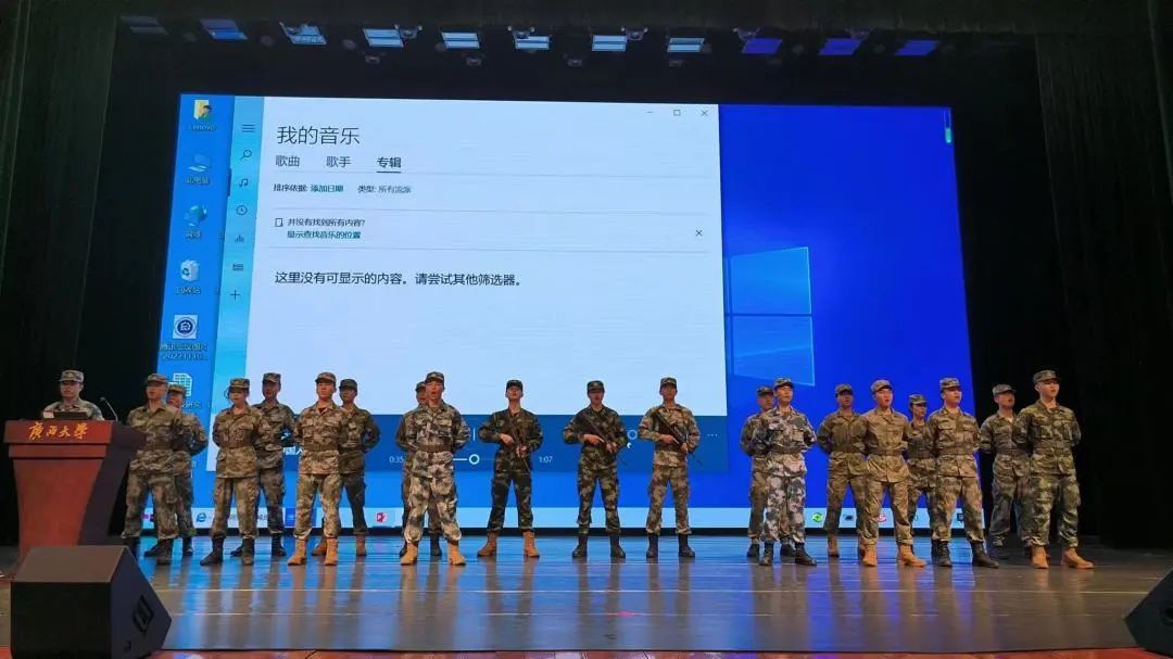 由退伍大学生们组成的宣讲团集体唱响了《中国人民解放军军歌》,规整的节拍、坚实的音调、流畅的旋律,向同学们展示了中国人民解放军军人的英姿风采。同学们,如果你有当兵的梦想,就勇敢迈出步子去尝试吧,让青春无遗憾!