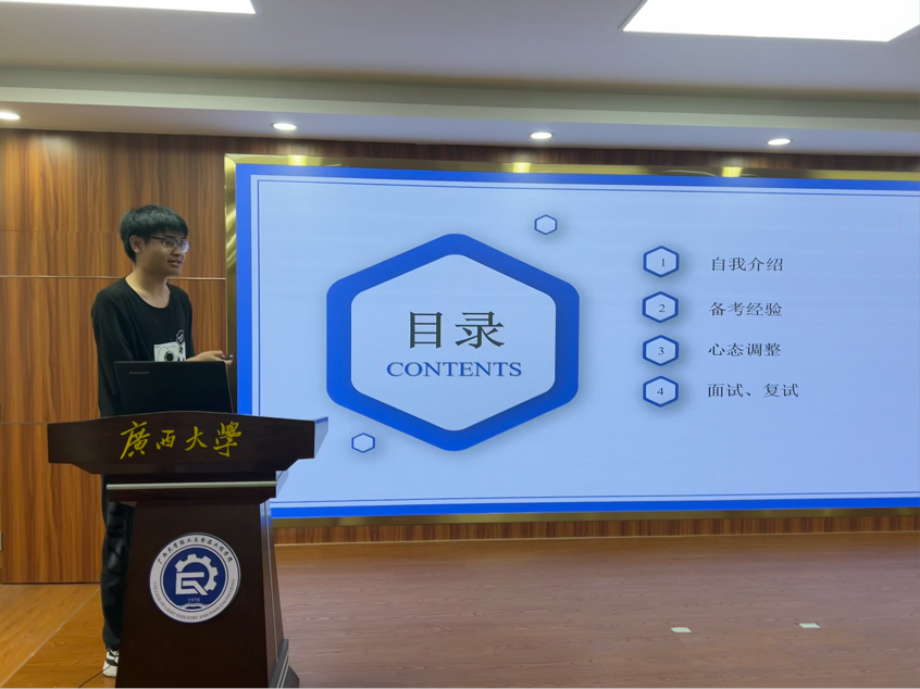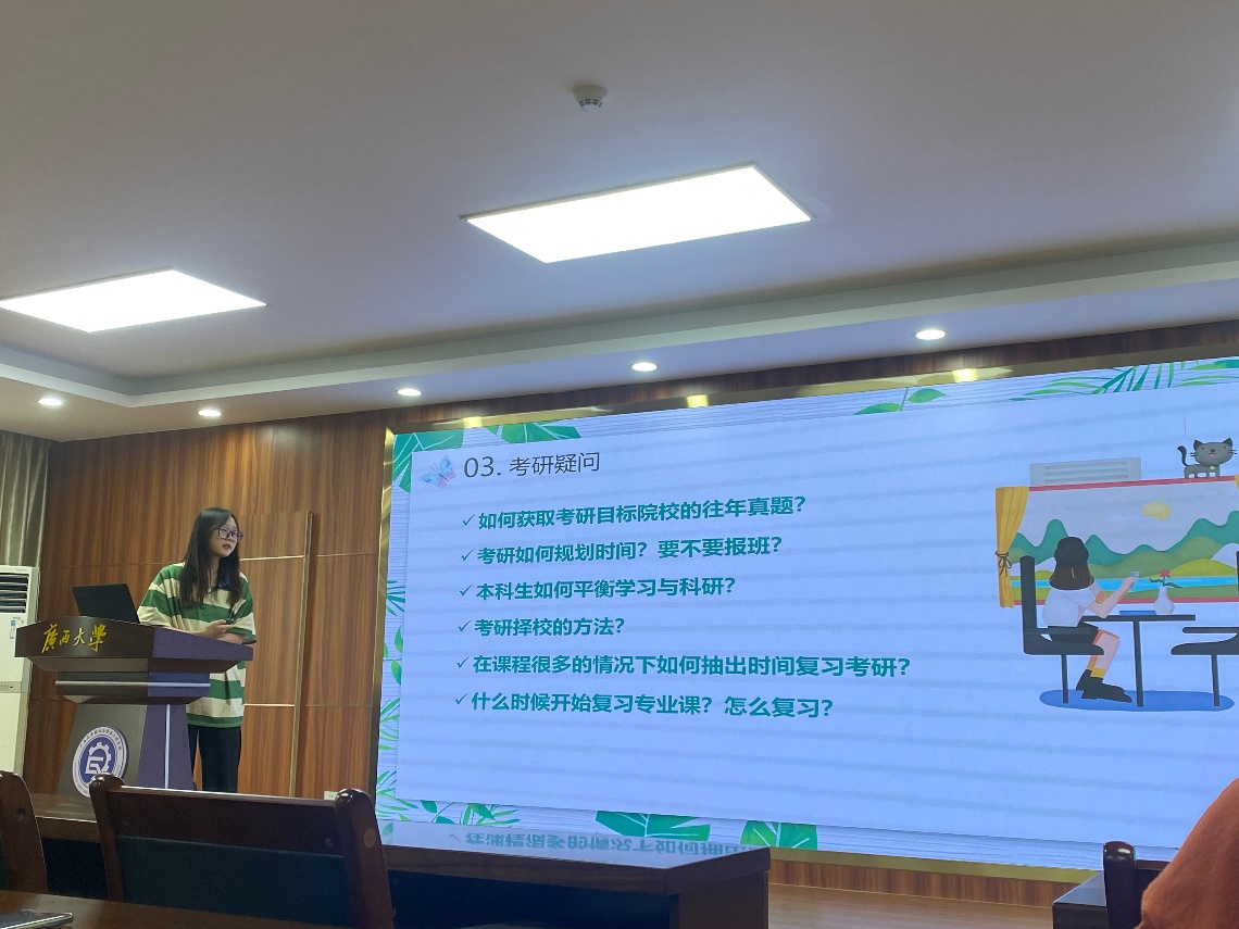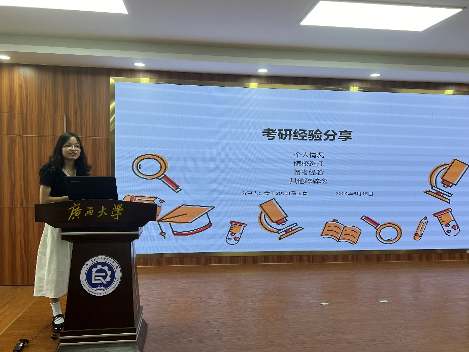 为发挥轻工朋辈榜样作用,增强轻工学子信心与决心,助力轻工学子升学, 6月18日下午,由共青团不卡毛无套内射久久不委员会主办,共青团不卡毛无套内射久久不欧美日韩国产在线委员会承办,院学生会策划开展的“轻朋同行,研榜题名”为主题的青春思享荟主题沙龙在我院604报告厅开展,沙龙邀请到六位考研保研成功的优秀毕业生到场分享经验,六名升学的同学依次分享了个人保研、考研的经验和心路历程。