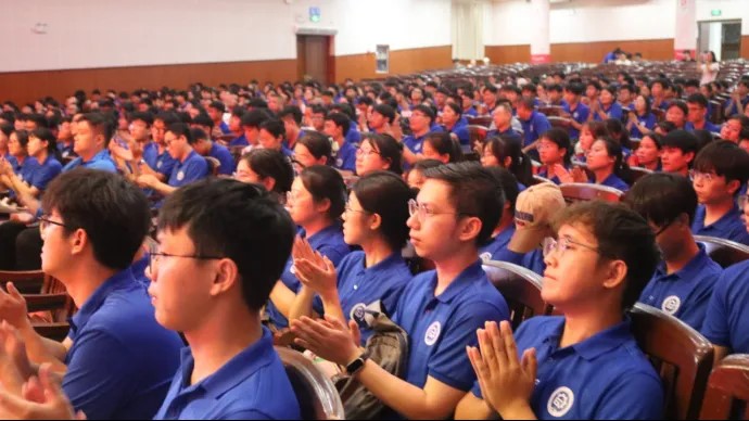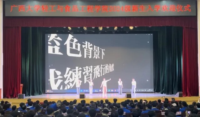 仪式在庄严的中华人民共和国国歌中拉开序幕,全体师生起立,用嘹亮的歌声表达对祖国的热爱与对新生未来的美好祝愿。随后,一曲活力四射的《我的未来式》由老生们激情演绎,瞬间点燃了现场氛围,传递出对新生们的热烈欢迎与深切关怀,让每位新生深切感受到学院大家庭的温暖。